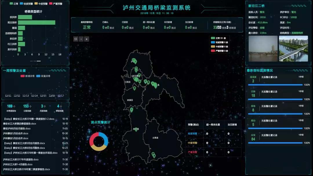 僅用3個月時間,源清慧虹的工程師團隊在瀘州市大跨徑、特殊結(jié)構(gòu)、低等級橋梁以及配屬隧道上部署了近4000個各類傳感器及網(wǎng)關(guān)設(shè)備,瀘州交通主管部門的橋梁隧道運營管理人員足不出戶(數(shù)據(jù)中心),便可輕松獲知橋梁、隧道是否處于正常狀態(tài)。