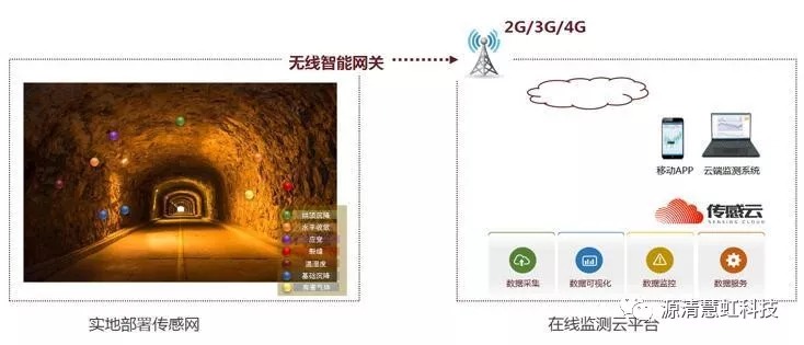 在線監(jiān)測(cè)云平臺(tái) :云平臺(tái)提供數(shù)據(jù)采集、數(shù)據(jù)展示、圖表繪制、統(tǒng)計(jì)分析、安全預(yù)警和系統(tǒng)管理等功能,實(shí)現(xiàn)動(dòng)態(tài)跟蹤管理,及時(shí)掌握隧道狀況的變化趨勢(shì),輔助管理者科學(xué)決策。